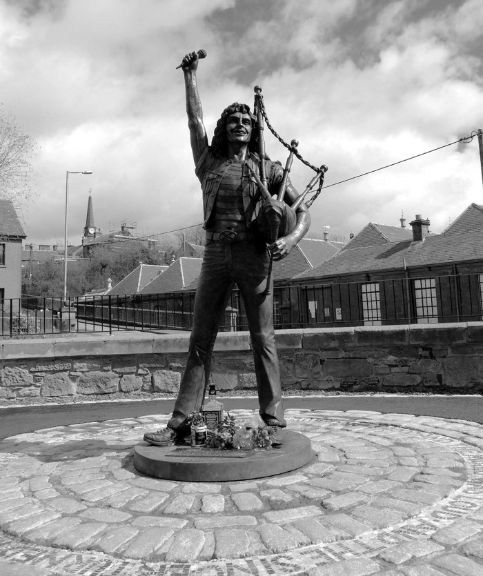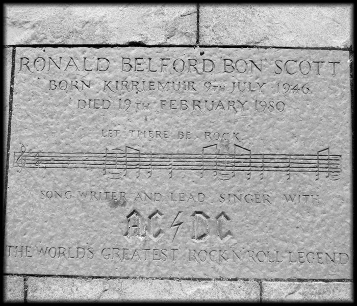 Before his parents emigrated 1952 from Scotland to Australia, Bon lives the first 6 years of his short live in Kirriemuir/Scotland.